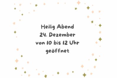 Am 24. Dezember haben wir von 10 bis 12 Uhr für Sie geöffnet.