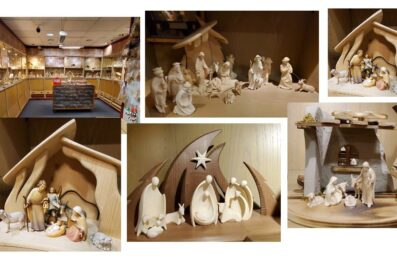 Ganzjährig kann man bei uns Krippenställe und Krippenfiguren kaufen. Unsere große Krippenverkaufsausstellung mit einer großen Auswahl verschiedener Krippen aus dem deutschen Sprachraum ist für alle großen und kleinen Besucher im Untergeschoss geöffnet. In unserer gemütlichen Krippenstube können Sie in Ruhe die gesammelten Schätze betrachten und käuflich erwerben. Wir haben keinen Online-Shop, Sie können uns jedoch