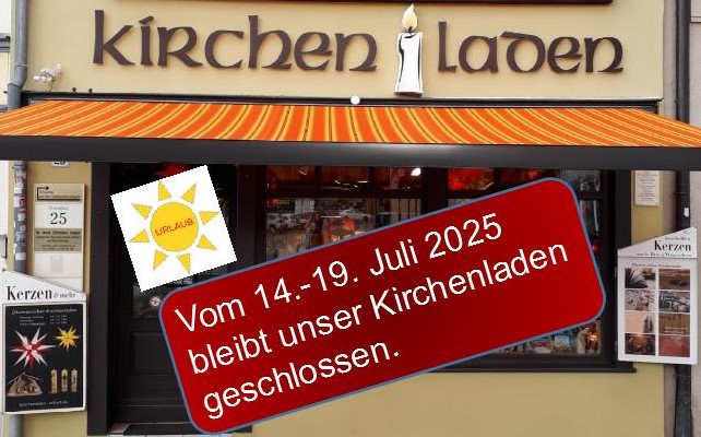 Vom 14.-19. Juli 2025 ist der Kirchenladen wegen Betriebsruhe geschlossen. Ab 21.7. sind wir wieder für Sie da!