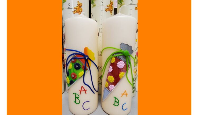 Wunderschöne, handgefertigte Kerzen zum Schulanfang stellen wir in unserer Kerzenwerkstatt her. Die Kerzen können noch individuell mit Namen gestaltet werden.