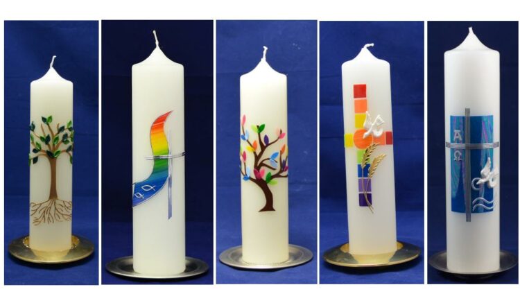 Zur Konfirmation und Firmung gestalten wir Ihre Wunschkerze mit schönen Motiven.